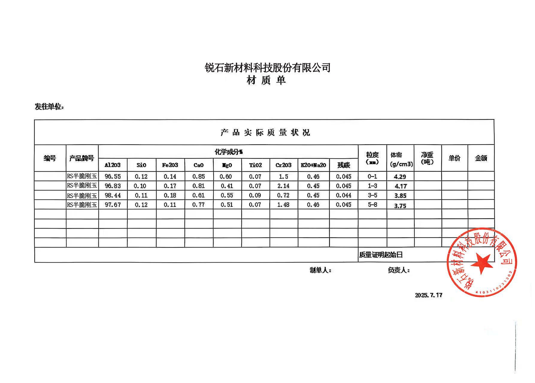RS半脆剛玉既有棕剛玉的任性,又有白剛玉的脆性,超出致密剛玉的耐火度,可以完美替代棕剛玉,白剛玉等耐火原料。
